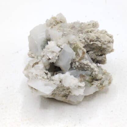 Beautiful set of white adularia and green titanite crystals from Rieder Tobel, in the canton of Grisons, Switzerland.