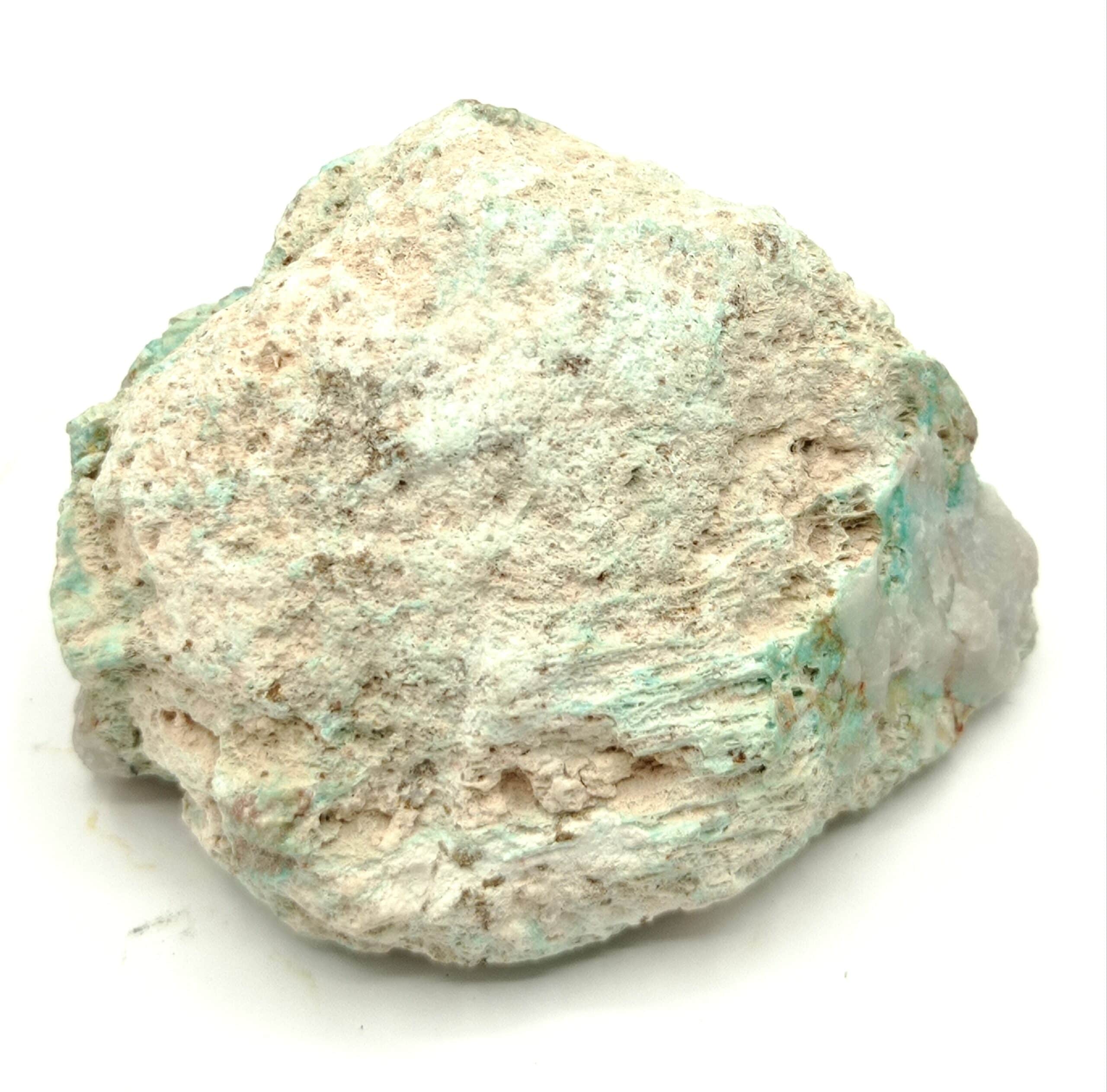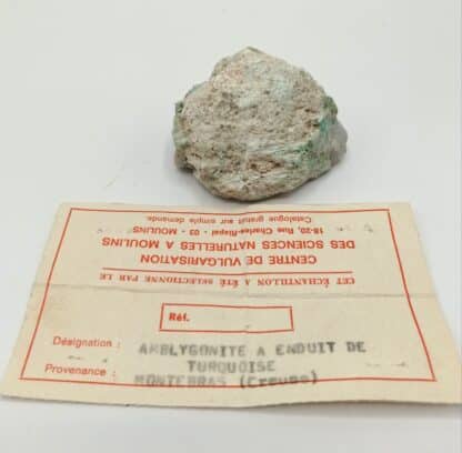 Crystals (non-automorphic) of amblygonite (a lithium phosphate) associated with bluish turquoise and gray quartz in a pegmatite-type rock.