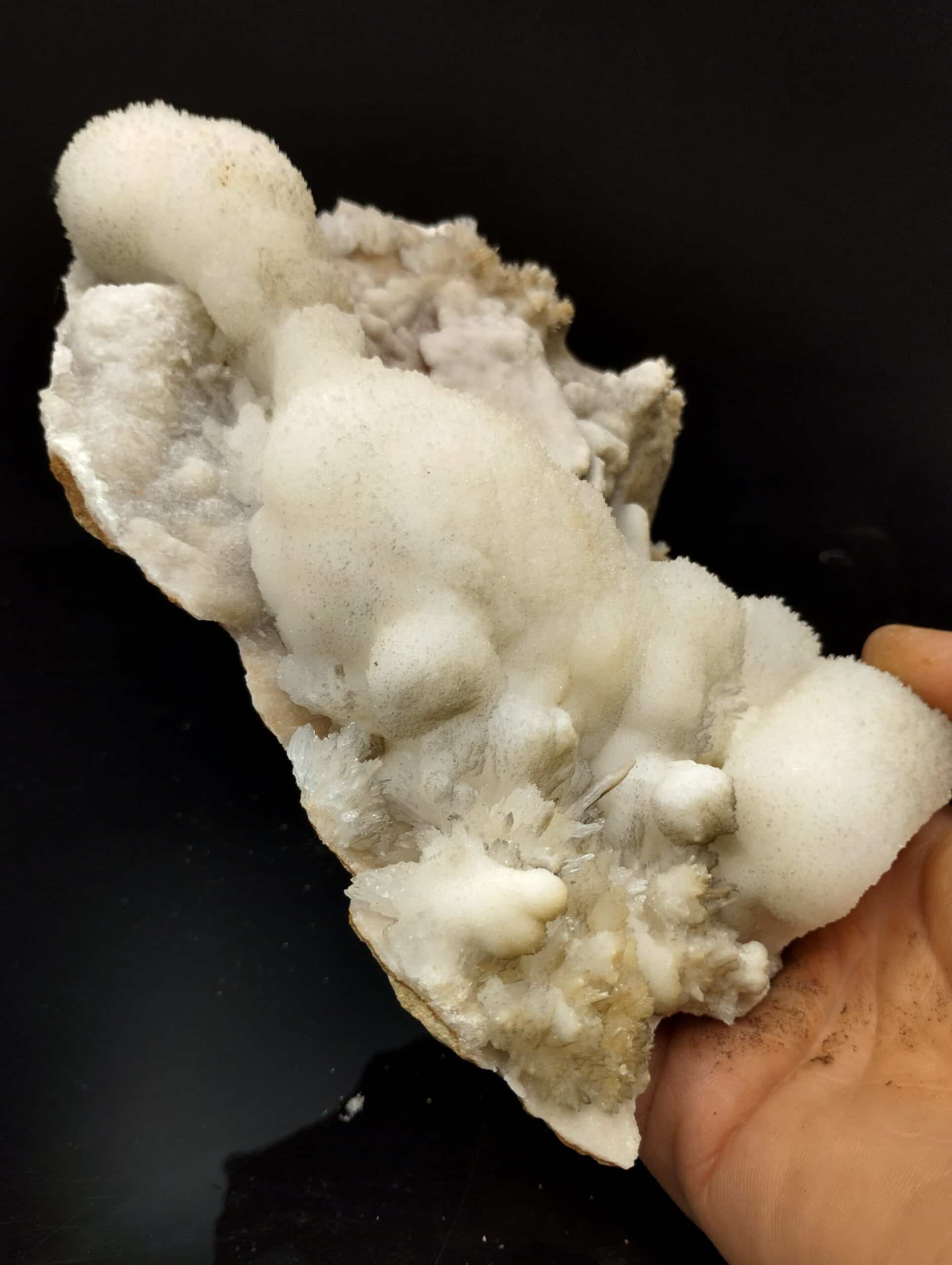 Magnificent set of white to pinkish, partially stalactite aragonite crystals on a siderite or limonite gangue. Large size, aesthetics and quality are the key words to describe this specimen.