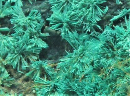 Superb plate showing fine acicular brochantite crystals in beautiful green clusters, on a black gangue.