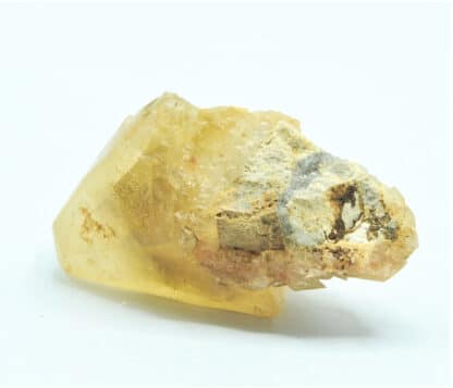 Large honey-yellow mottled calcite crystal, automorphic, from the famous Landelies locality at Montigny-le-Tilleul in Belgian Hainaut.