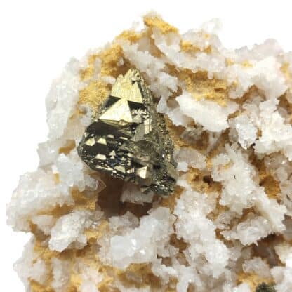 Superb automorphic crystals of chalcopyrite on quartz, a mineral from the Armée Céleste mine at Sainte-Marie-aux-Mines, Haut-Rhin, Alsace, in the Vosges mountains.