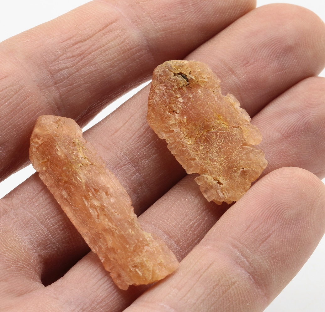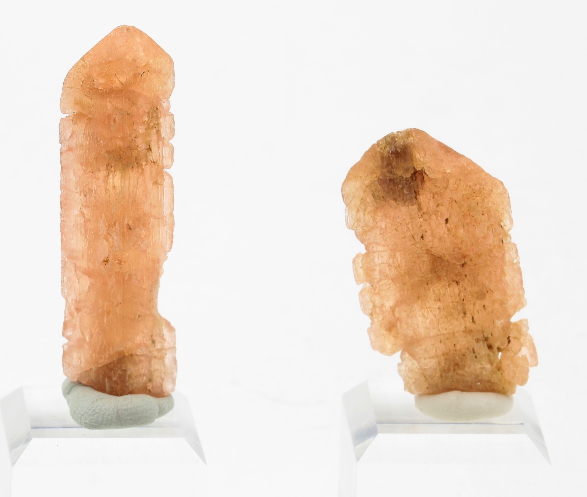 Lot of two specimens of childrenite, in lamellar, translucent crystals of a beautiful orange-pink hue.