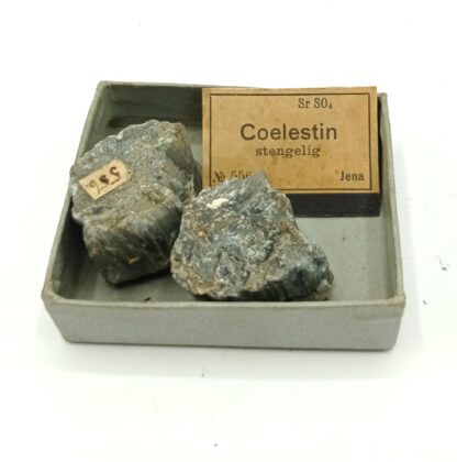 Blue fibro radiated celestite crystals typical of the Jena deposit, eastern Germany.