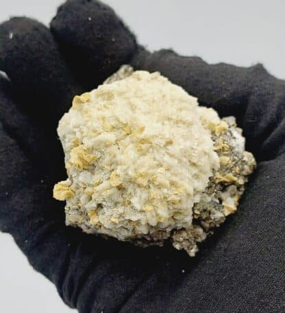 Ball of pearly-white crystallized dolomite with selliform orange ankerite crystals.