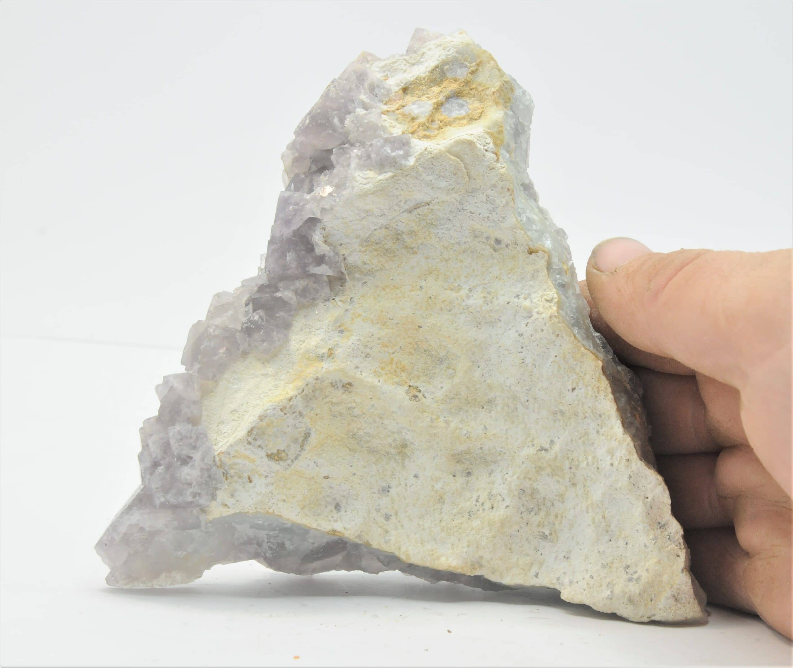 Set of mauve fluorite cubic crystals, sometimes bluish, a little frosted, but well crystallized and covering the entire surface of the piece.