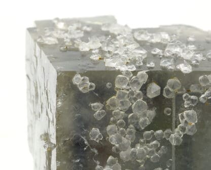 Fluorite crystal covered with quartz crystals from the Burc mine in the Burg, Tarn. The crystal has many growth phantoms, not easy to photograph.