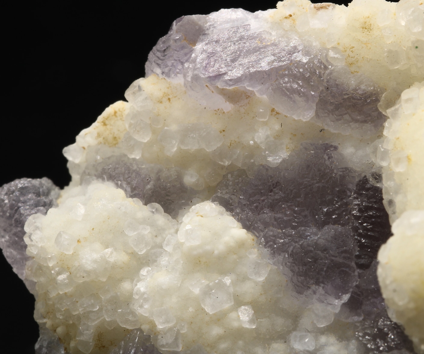 Specimen showing purple octahedrons of fluorite on barite, encrusted with quartz, from the upper levels of the Maine mine at Reclesne in Saône-et-Loire (Morvan).