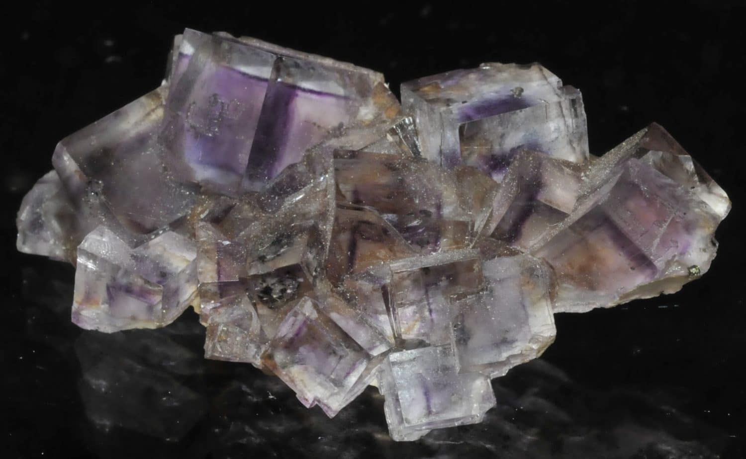 Group of purple fluorite crystals with many well visible growth phantoms from Illinois (USA). Superb small piece with brilliant crystals, piece selected from the fluorite collection of Michel and Nicole Carré.