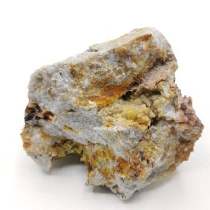 Association of crystals of fournétite, galena, chalcopyrite, pyromorphite and cerusite on quartz, minerals from the La Verrière mine in Les Ardillats, Rhône department.
