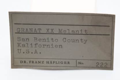 It comes from the San Benito mine in California, particularly well known for its benitoite crystals associated with neptunite.