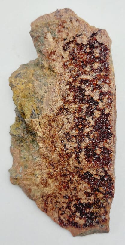 Bright red garnet veneer, typical of the rodingites of which the gangue is composed.