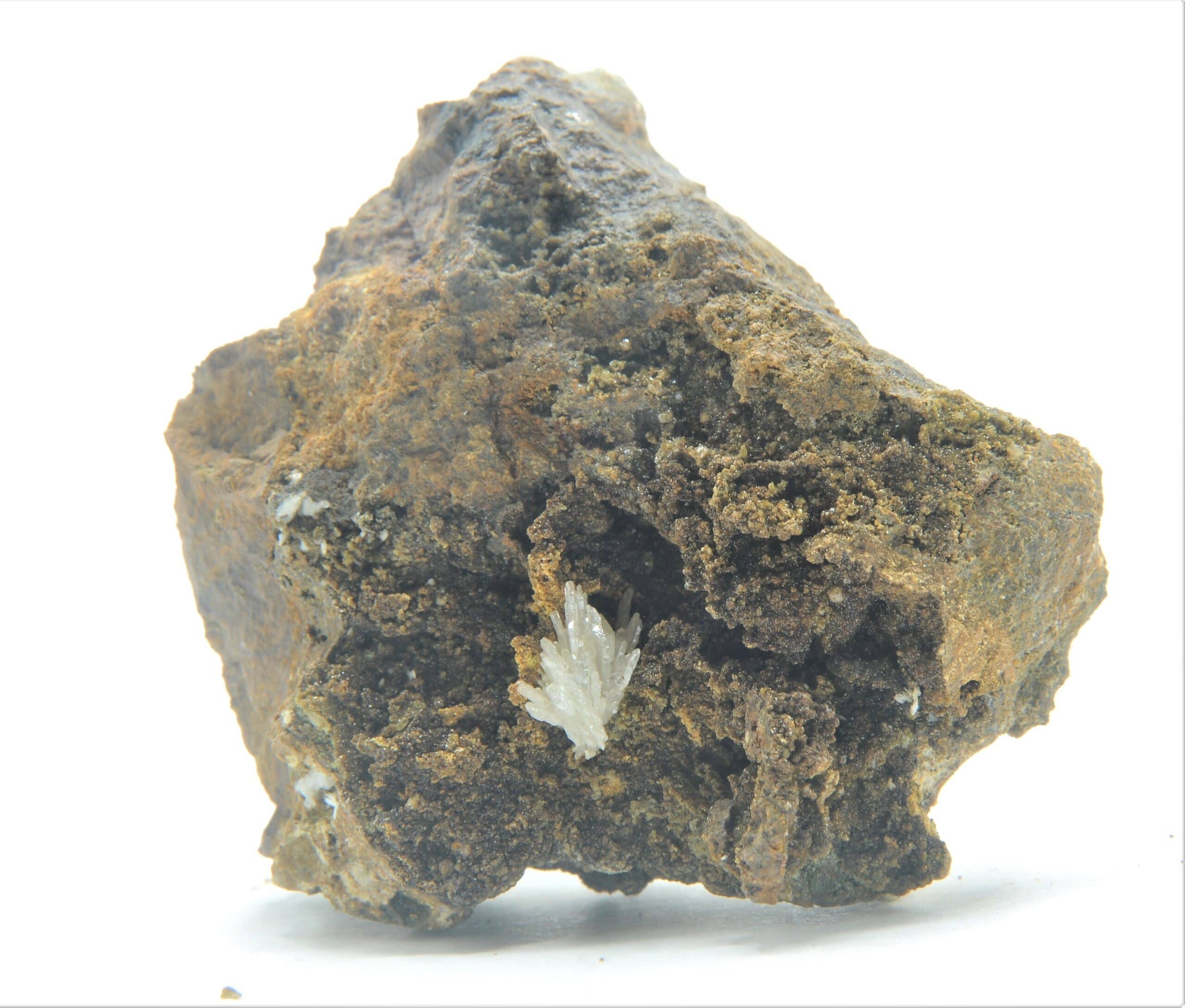 A pretty spray of bright white hemimorphite crystals set off by micro-crystals of brown willemite. These minerals were found at the Rivet quarry, Peyrebrune, in Saint-Lieux-Lafenasse, Tarn.