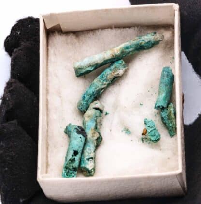 Batch of duck-blue orthoserpierite stalactite pieces.