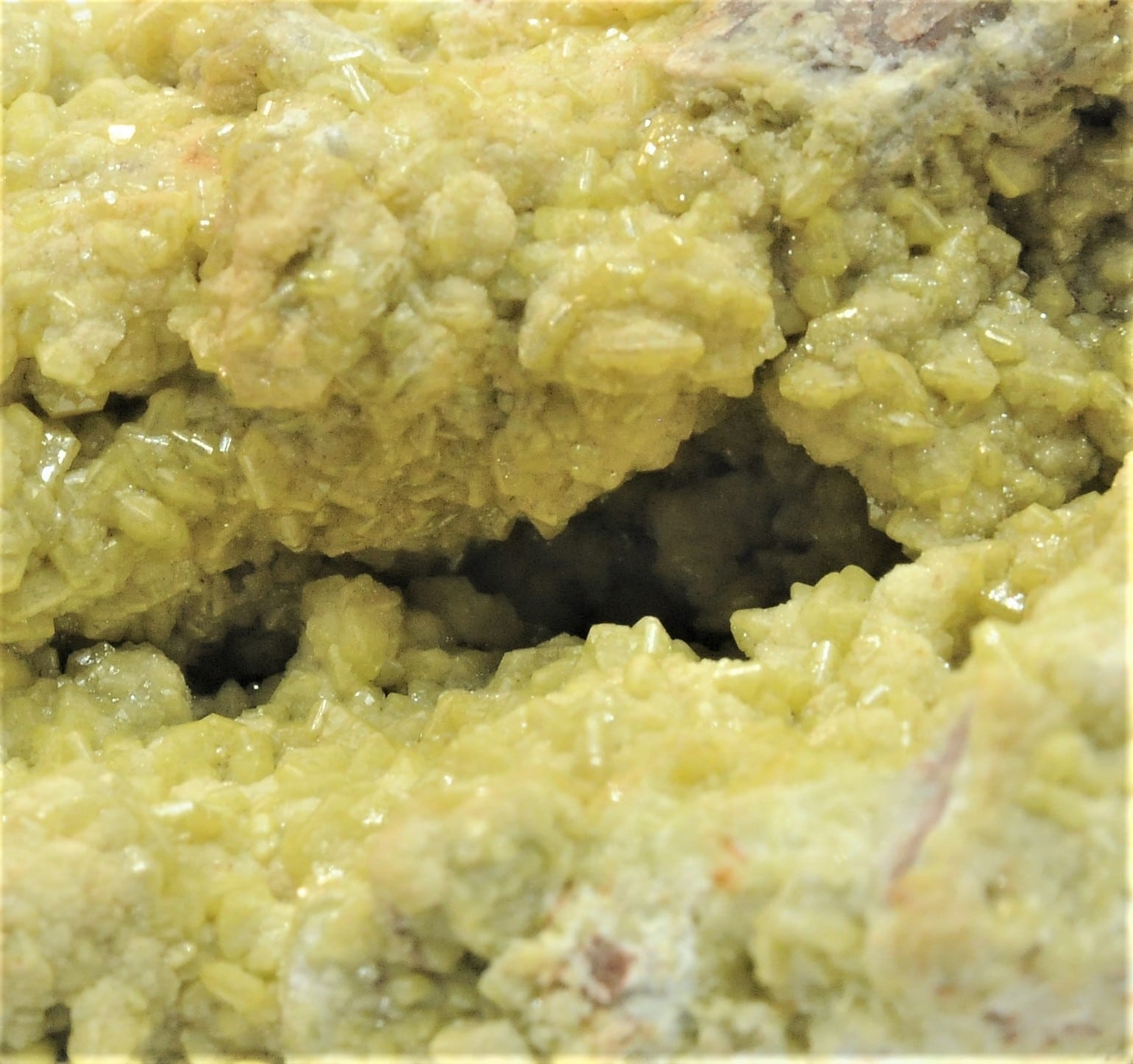 To complete the mineral diversity of this deposit (see previous specimens), here are some very good bright yellow mimetite crystals on a brown gangue.