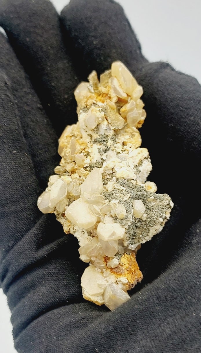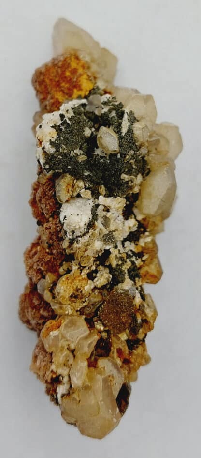 Specimen of nailhead calcite with a few hexagonal tablets of Pyrrhotite pseudomorphosed into pyrite.