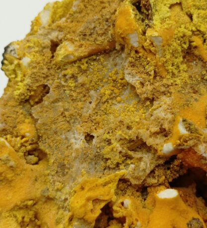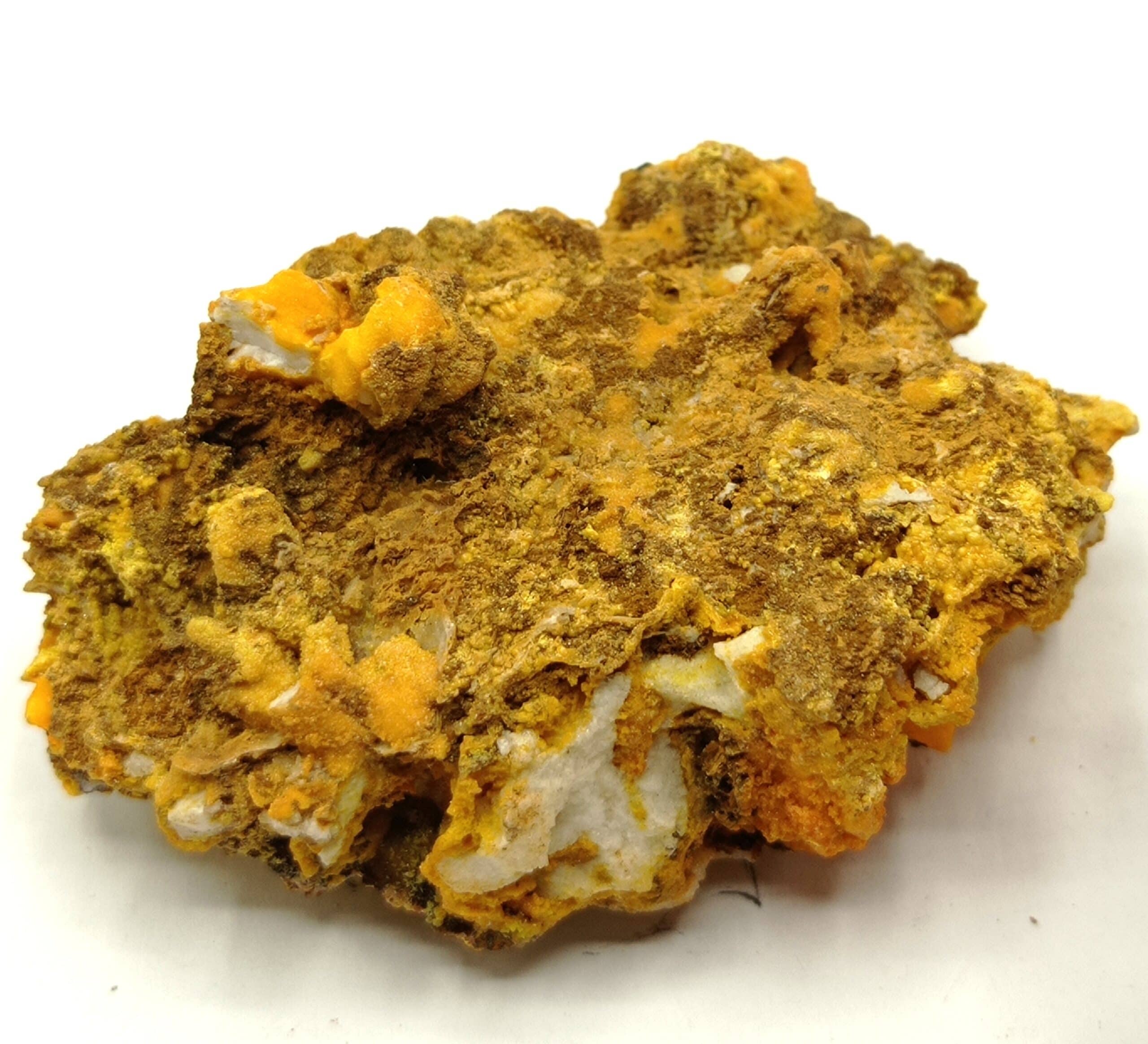 A very good historical specimen of pyromorphite in fine orange to green crystals, somewhat stalactiform on a gangue of white quartz. Beautiful color and contrast.