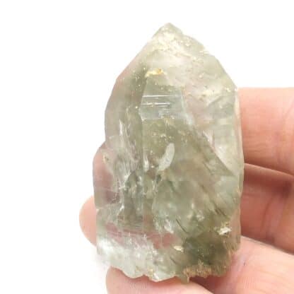 Beautiful perfect quartz crystal with green asbestos fiber inclusions from Chalmegg, Guttannen in the canton of Bern, Switzerland.