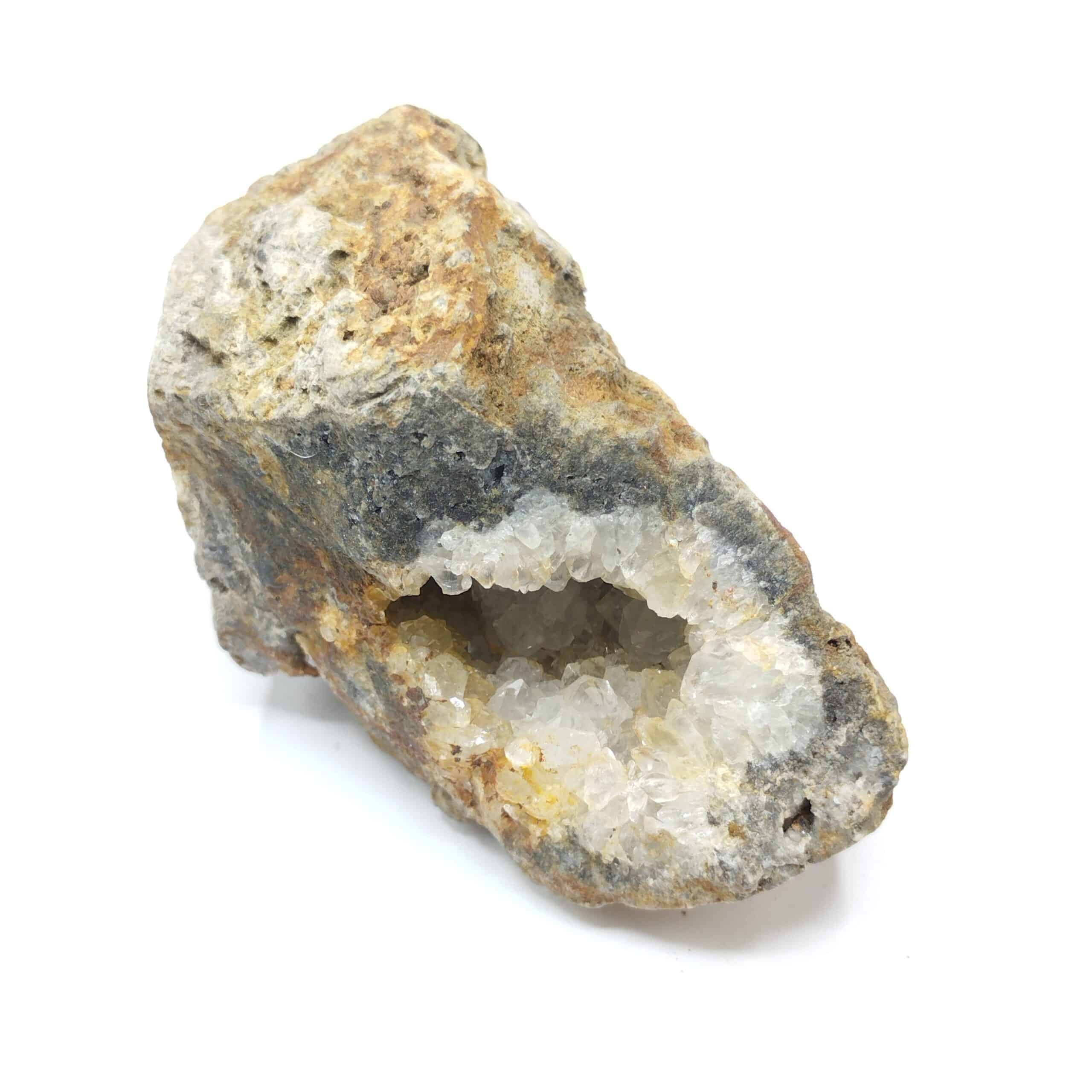 Geode of chunky quartz crystals in iron gangue.
