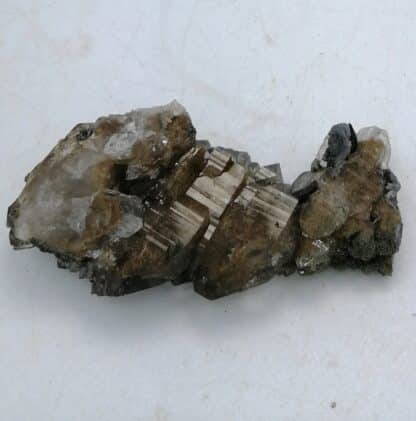 A quintessential Lauzière mineralogy specimen! An 8mm rutile pseudomorphosed anatase sits atop a limpid quartz crystal with a very airy architecture and beautiful brown chlorite inclusions. The original shape of the anatase crystal remains preserved and silvery.