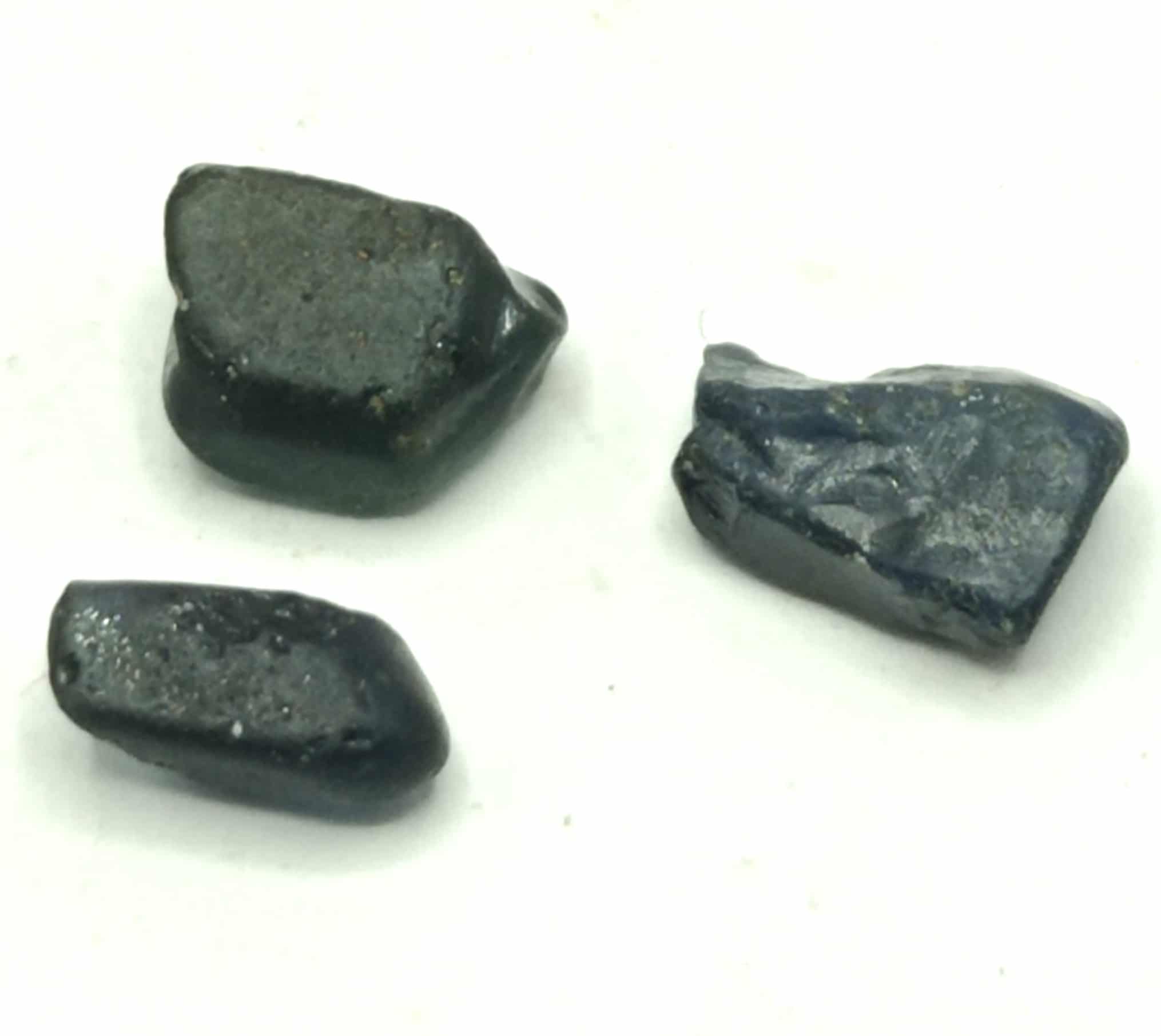 Here are 3 very blue sapphires, of very good size, some of which have automorphic faces or color variations. They are 9 mm long each.