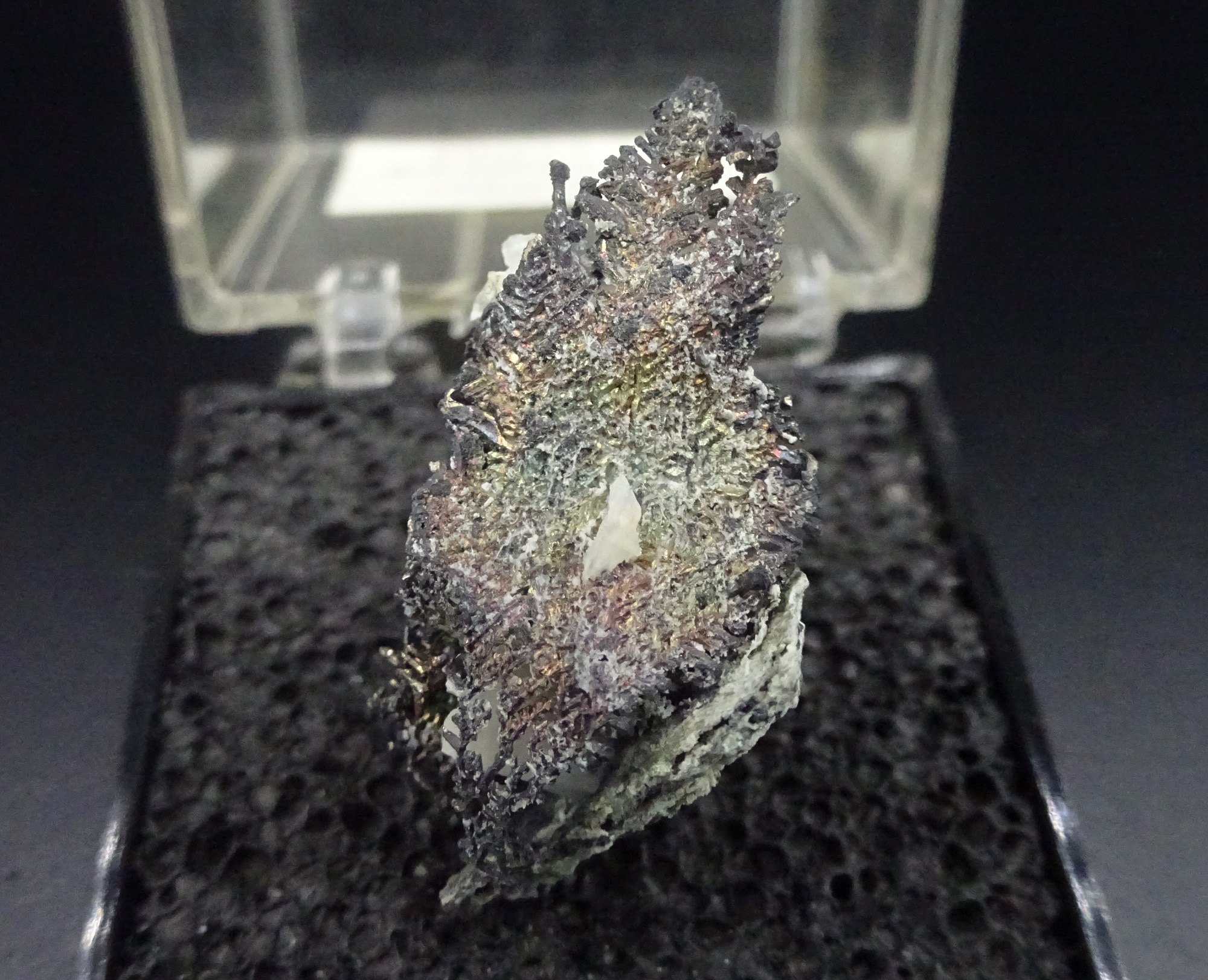 Serrated blade of feather-like native silver dendritic crystals with attractive iridescence.