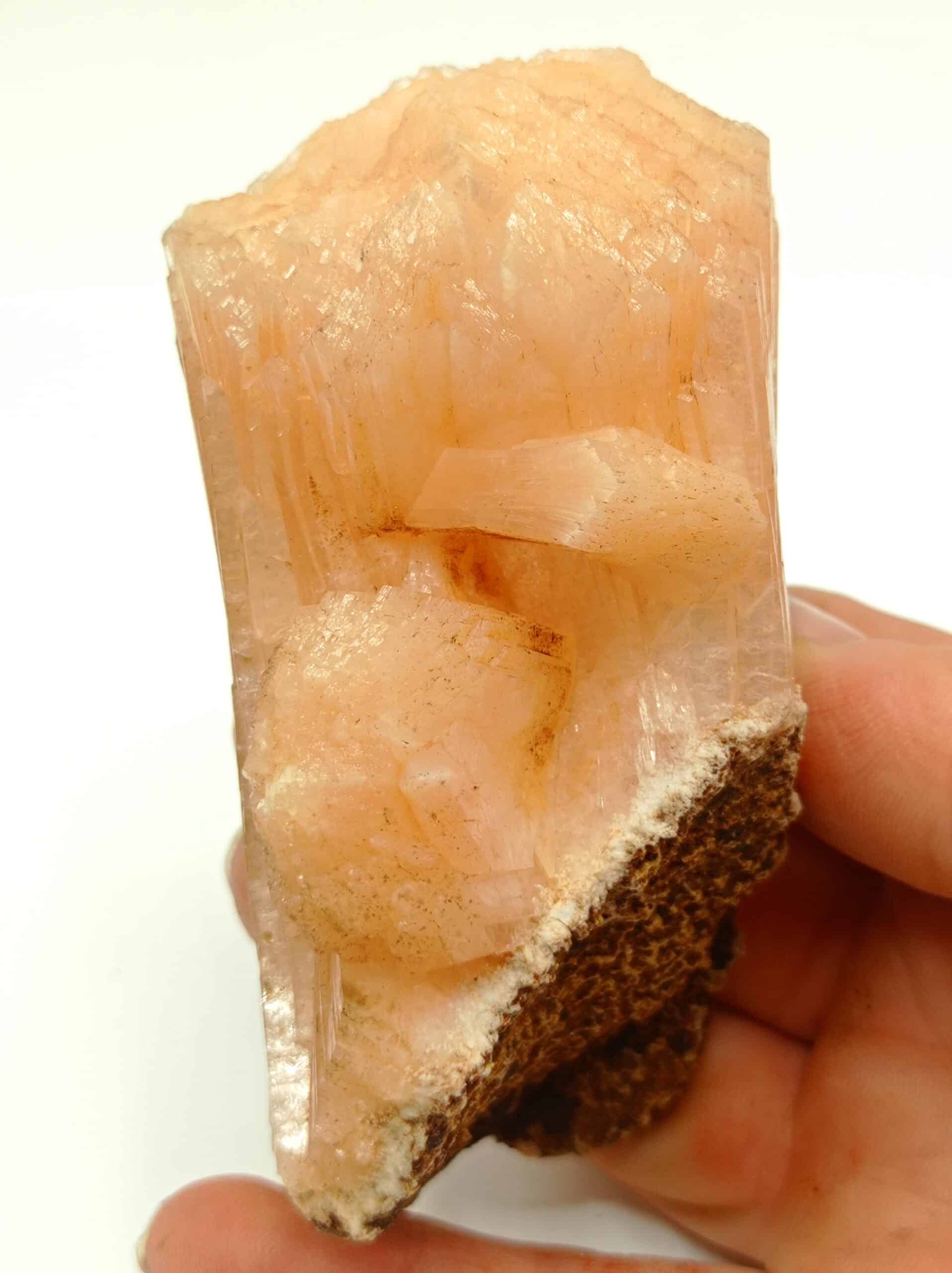 Superb historic specimen of bow-tie pink-orange stilbite crystals from Brazil.