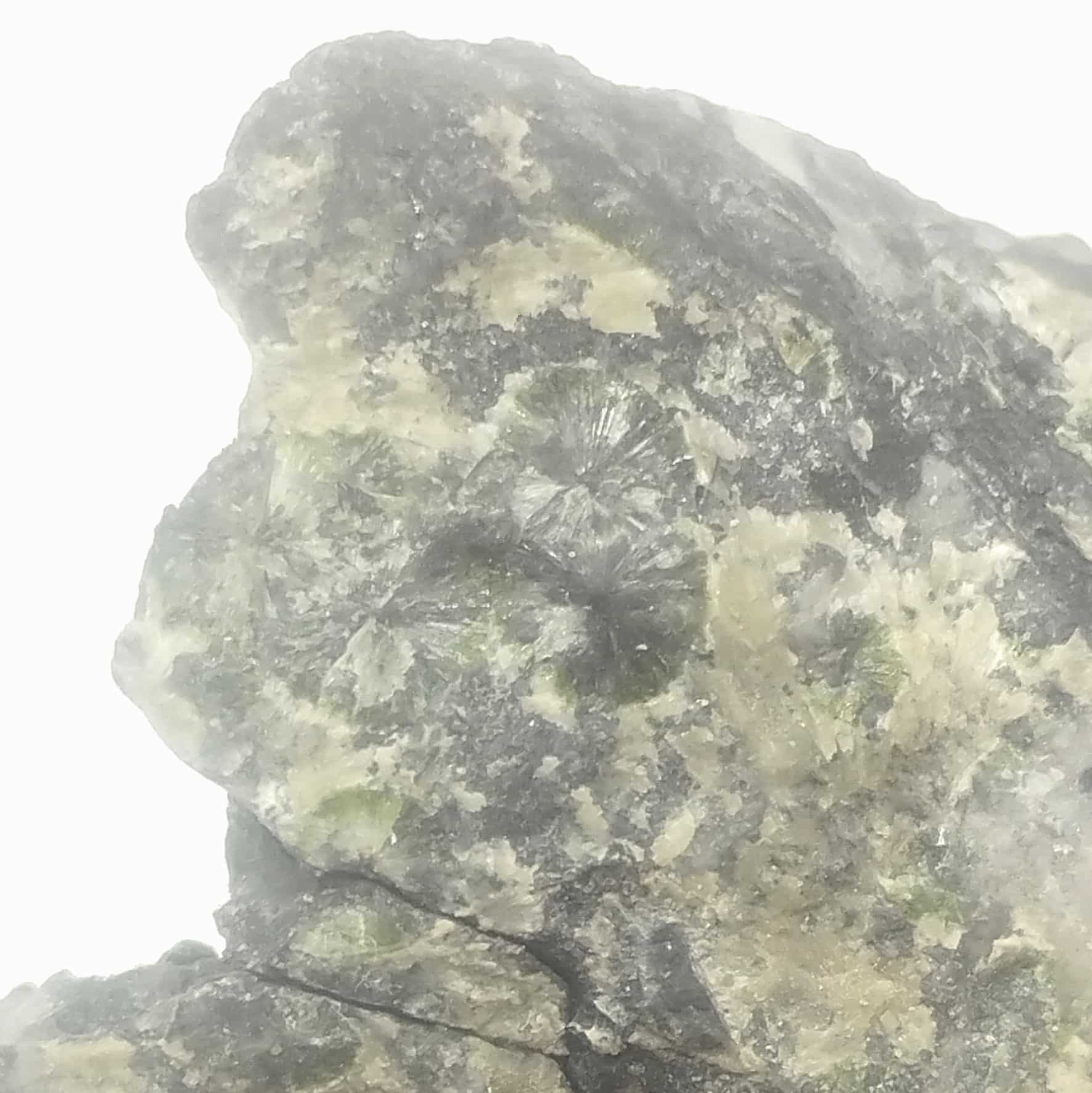 Fine green radiated wavellite crystals on black gangue from the La Floquerie quarry at Pannecé in the Loire-Atlantique department.
