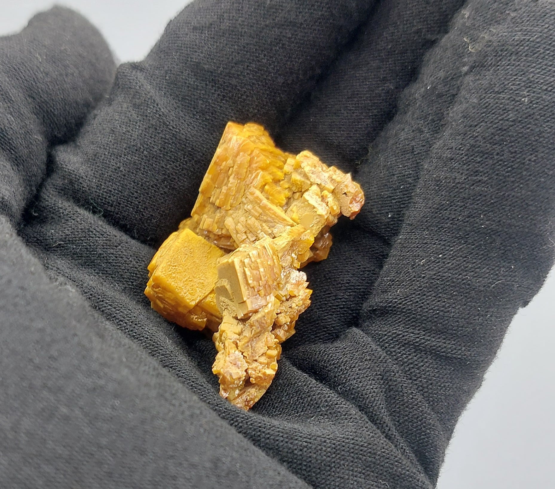 Fully floating assemblage of tabular, flattened wulfenite with a resinous yellow-orange luster.
